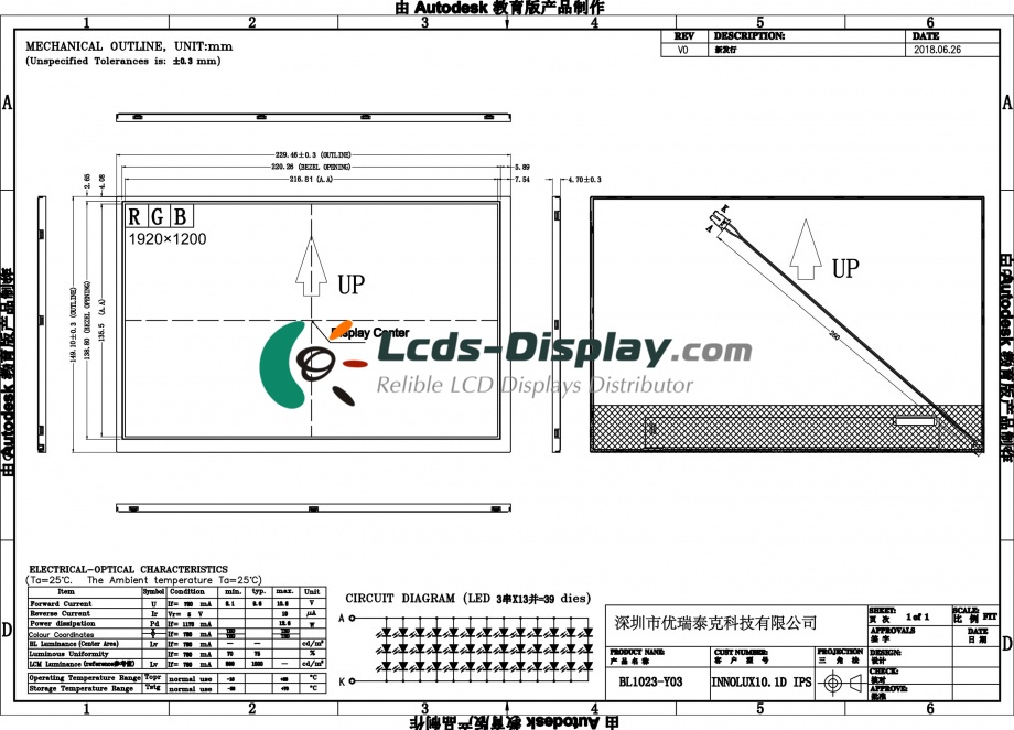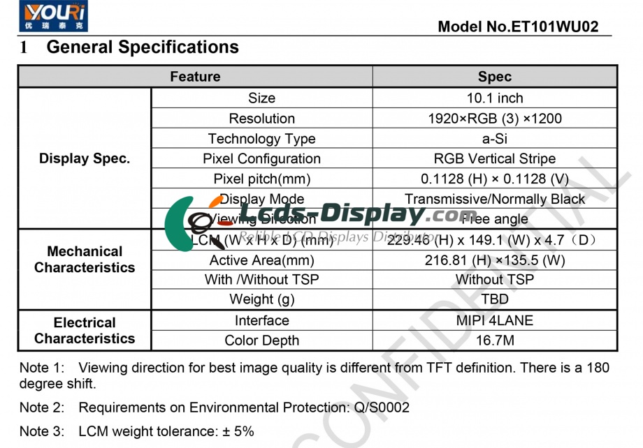| Descrition | a-Si TFT-LCD ,10.1 inch, 1920×1200 |